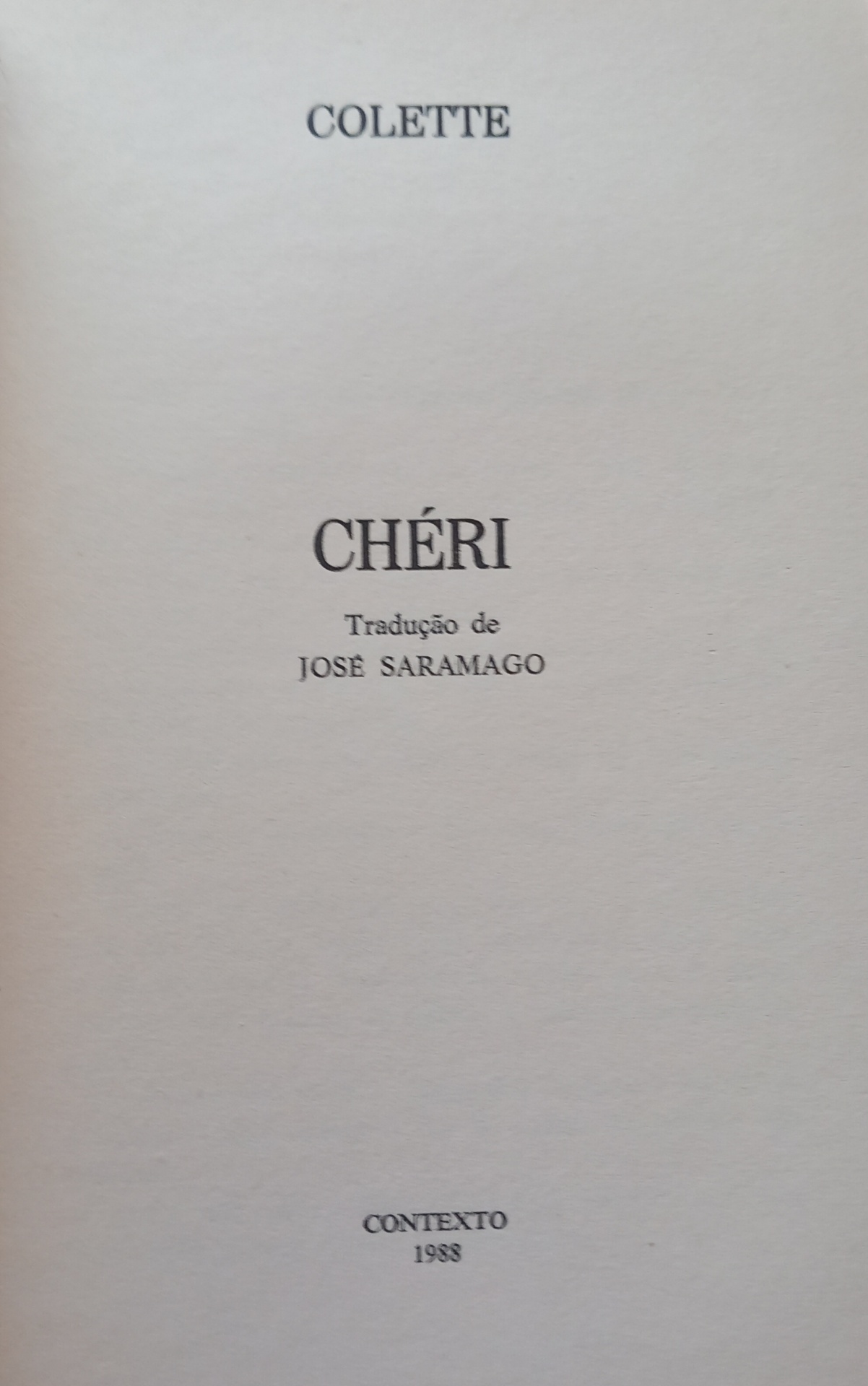 “Chéri” é o “romance emblemático” de “uma das mais fortes personalidades literárias francesas deste século” (o século XX, evidentemente) - lê-se na contracapa do livro republicado pela Contexto. Esta edição é de 1988. A edição original francesa é de 1920. A primeira edição em português foi em 1960, pelos Estúdios Côr. A editora Presença também o publicou, em 2009, sempre com a tradução de Saramago, que, diz o site da Wook, “restitui-nos todos cambiantes da escrita de Colette com magnífica pujança e nitidez”.