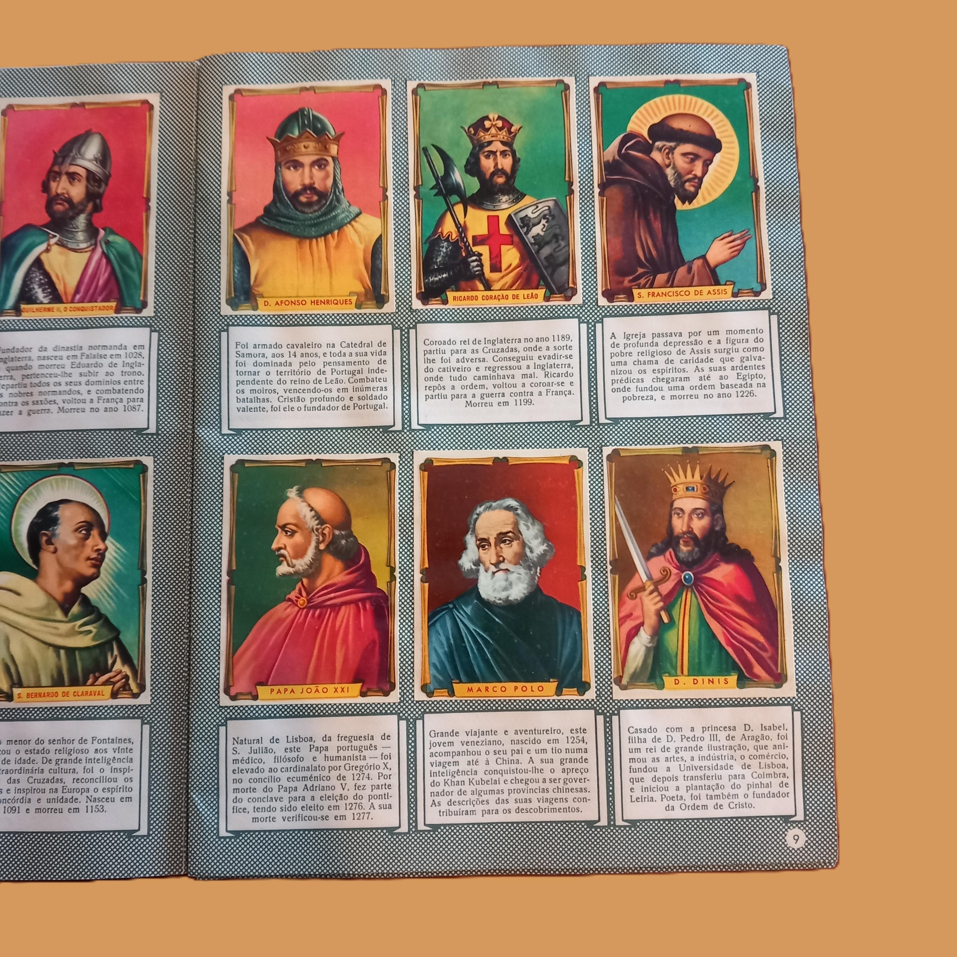 Série de 250 cromos de figuras imortais, nacionais e mundiais. Caderneta completa. Em muito bom estado, mas faltam os dois agrafos que prendiam as páginas por estarem enferrujados.